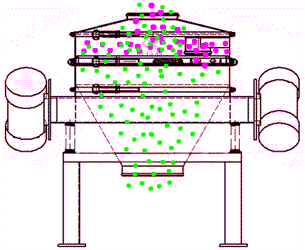 SYT系列三次元振動篩的基本原理是利用電機(jī)軸上下安裝的重錘(不平衡重錘),將電機(jī)的旋轉(zhuǎn)運(yùn)動轉(zhuǎn)變?yōu)樗?、垂直、傾斜的三次元運(yùn)動,再把這個運(yùn)動傳遞給篩面,使物料在篩面上做外擴(kuò)漸開線運(yùn)動,故該系列振動篩又被稱之為旋振篩。該系列振動篩具有物料運(yùn)行的軌跡長,篩面利用率高等優(yōu)點(diǎn),調(diào)節(jié)上、下兩端重錘的相位角,可改變物料在篩面上的運(yùn)動軌跡可以對物料進(jìn)行精篩分、概率篩分等。